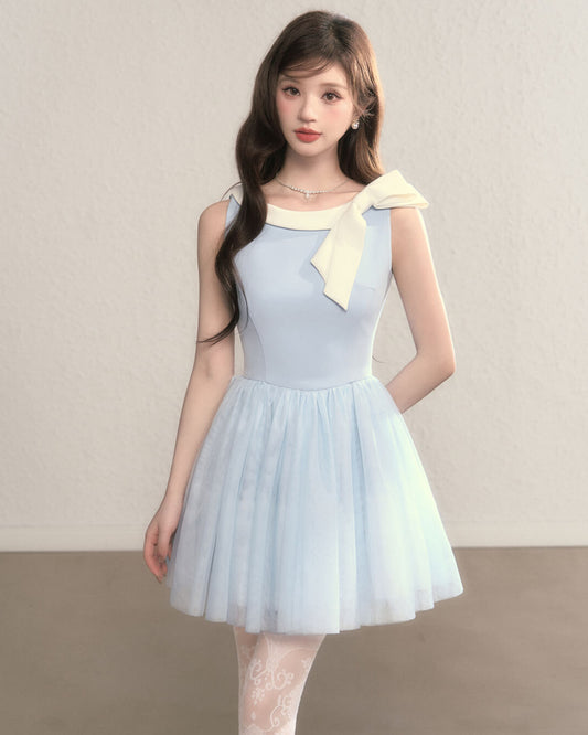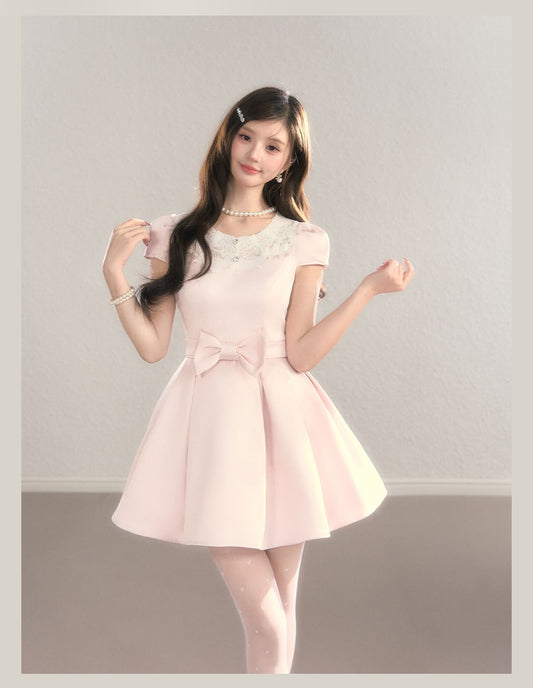 Elegant Back Ribbon Fit & Flare Mini Dress