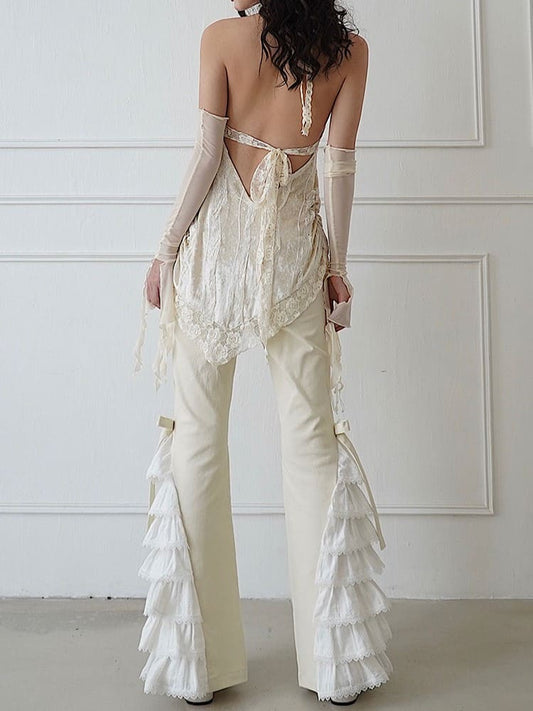 Silver Plate & Back Ribbon Tiered Dress(全2色)