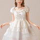 ・ティアードスカートとレース装飾で高級感と華やかさを演出。