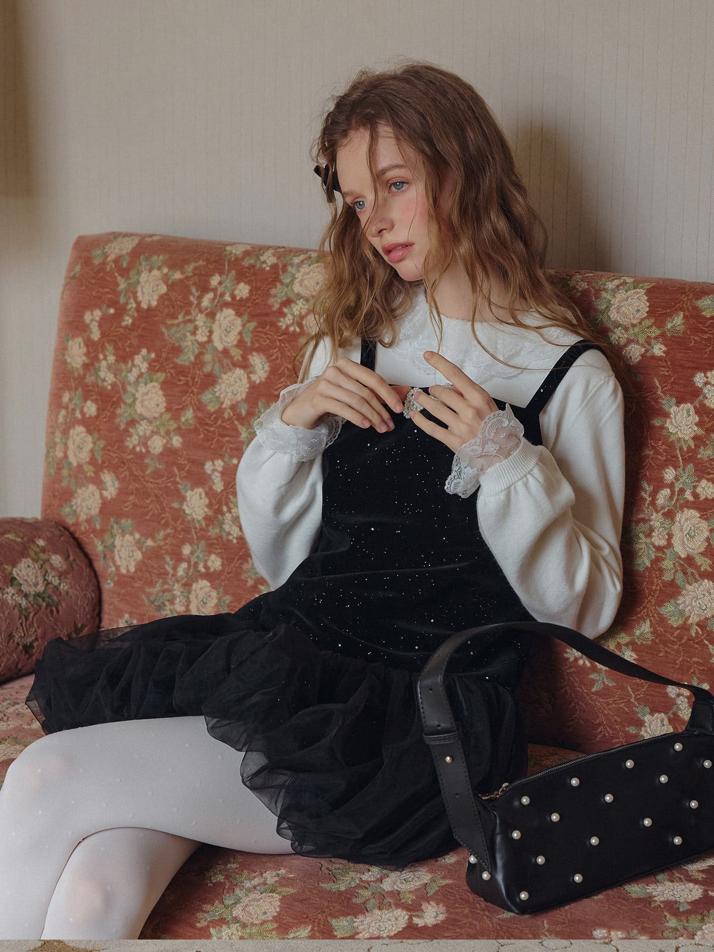 ・星空のようにきらめくラメ入りベルベット素材が、上品で幻想的な印象を演出。