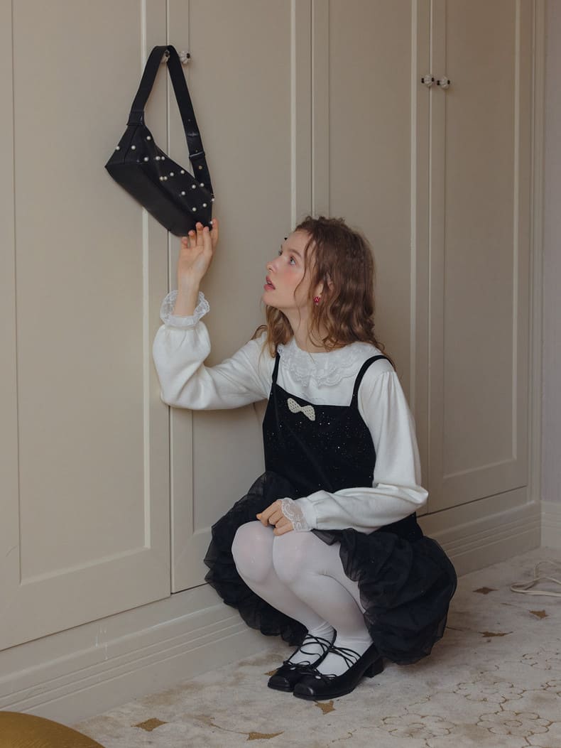 ・胸元のリボンモチーフが、クラシカルで高級感のあるアクセントに。