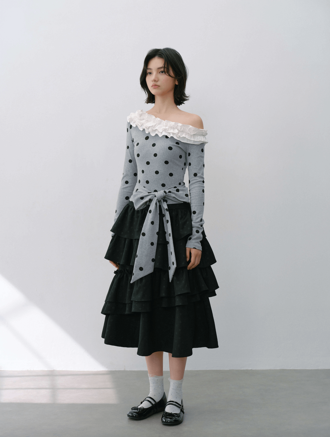 段フリルでありながら甘くなりすぎず、上品さをしっかりと感じていただけます。
