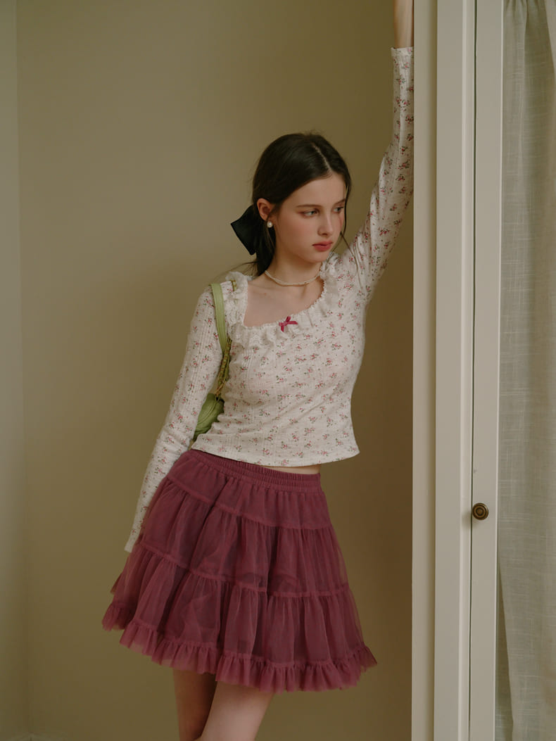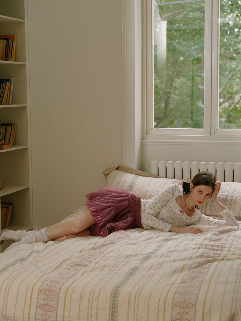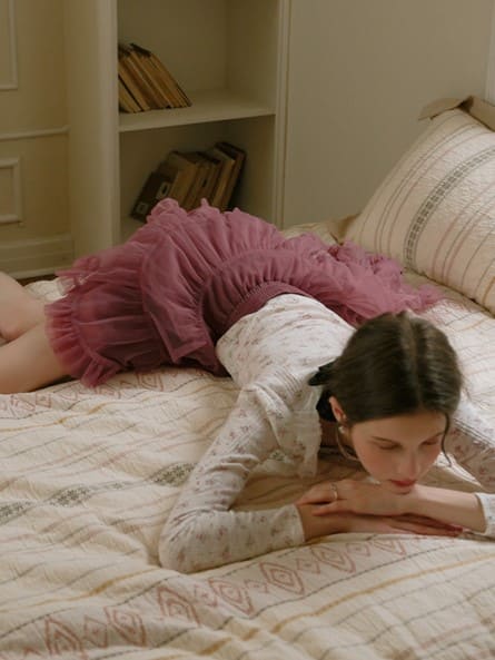 ・柔らかな素材と繊細なフリルが作り出す、立体感のあるデザイン。