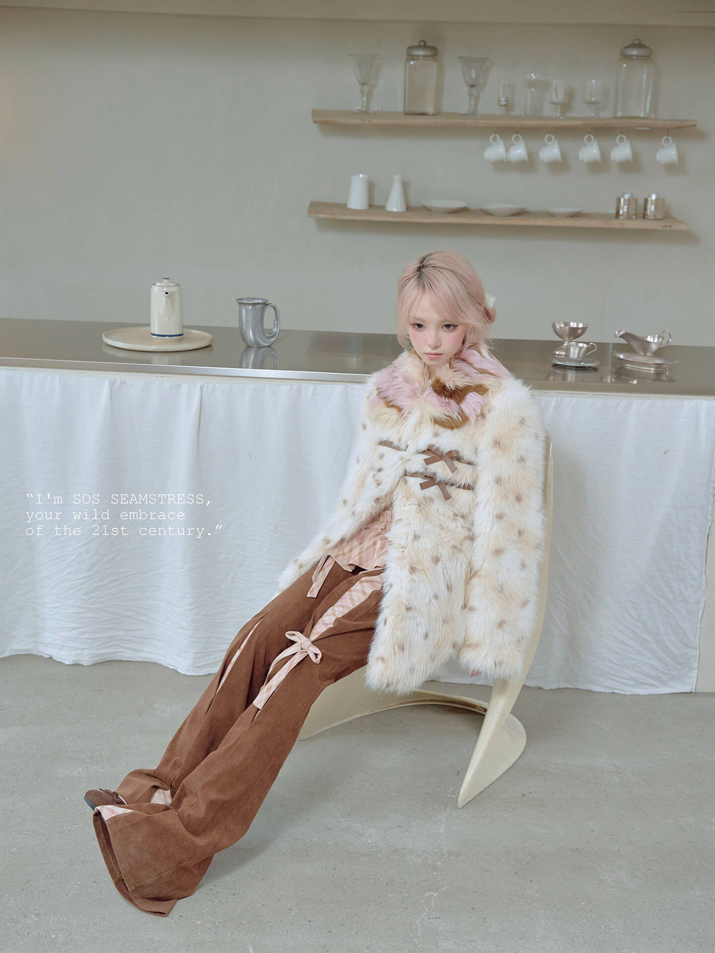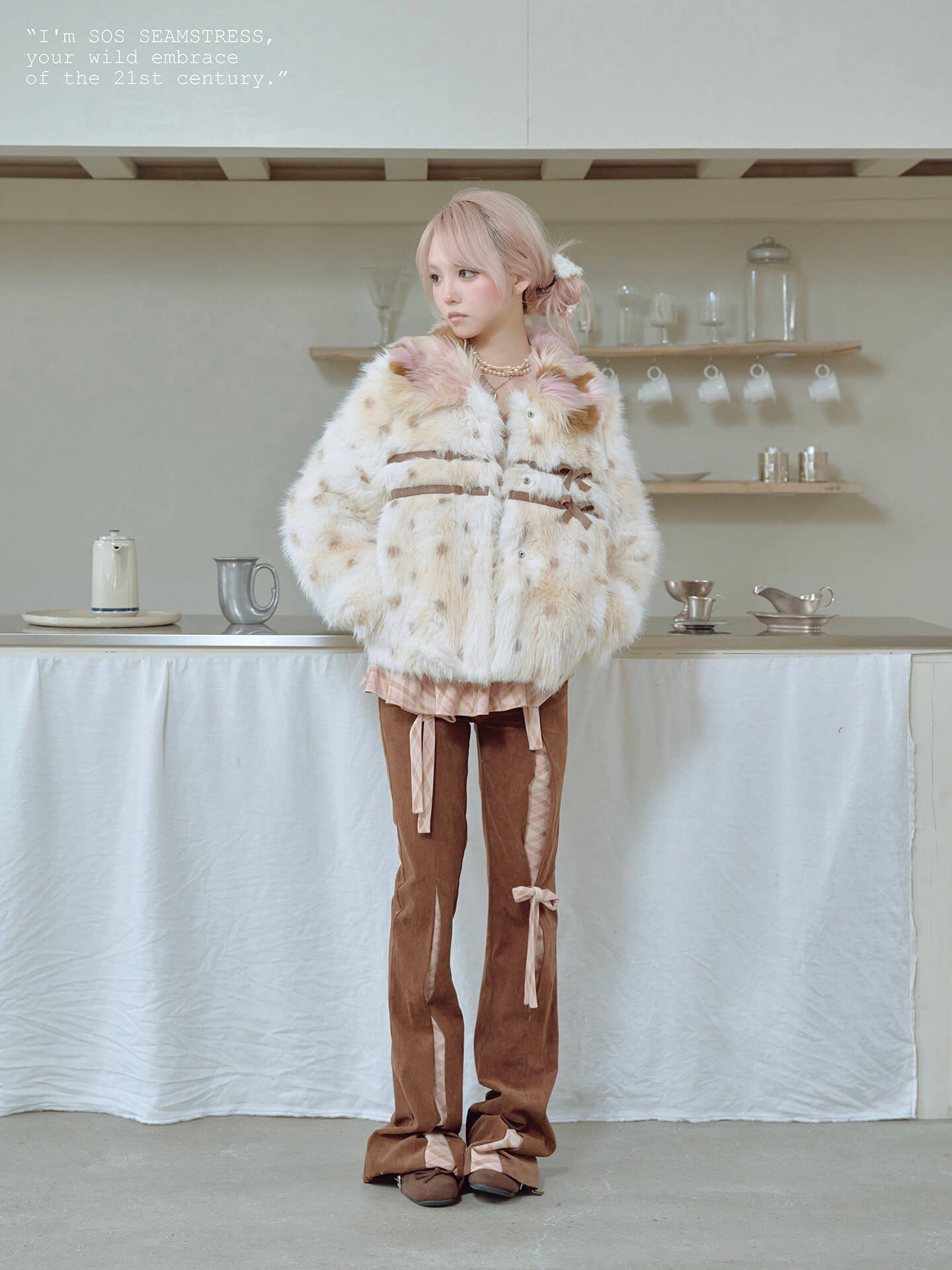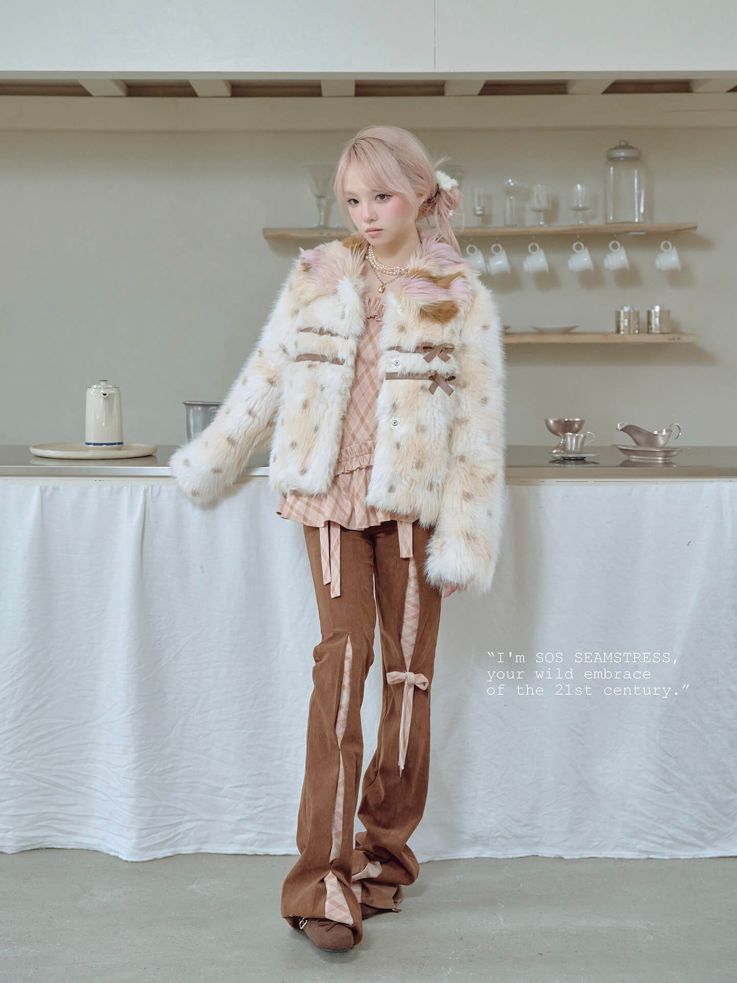 甘さのあるリボンデザインと落ち着いたブラウンカラーの組み合わせが、上品さを演出してくれるパンツです。