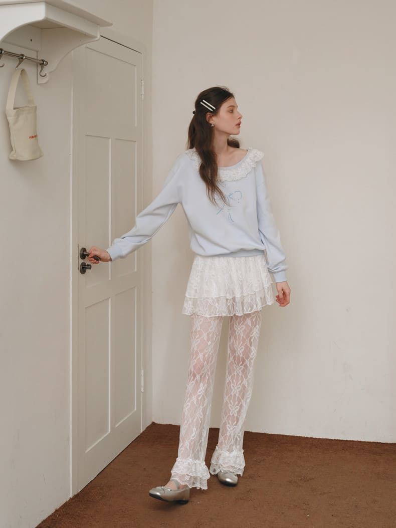 繊細なレースが重なり合い、動くたびに優雅さが香るレイヤードパンツ