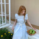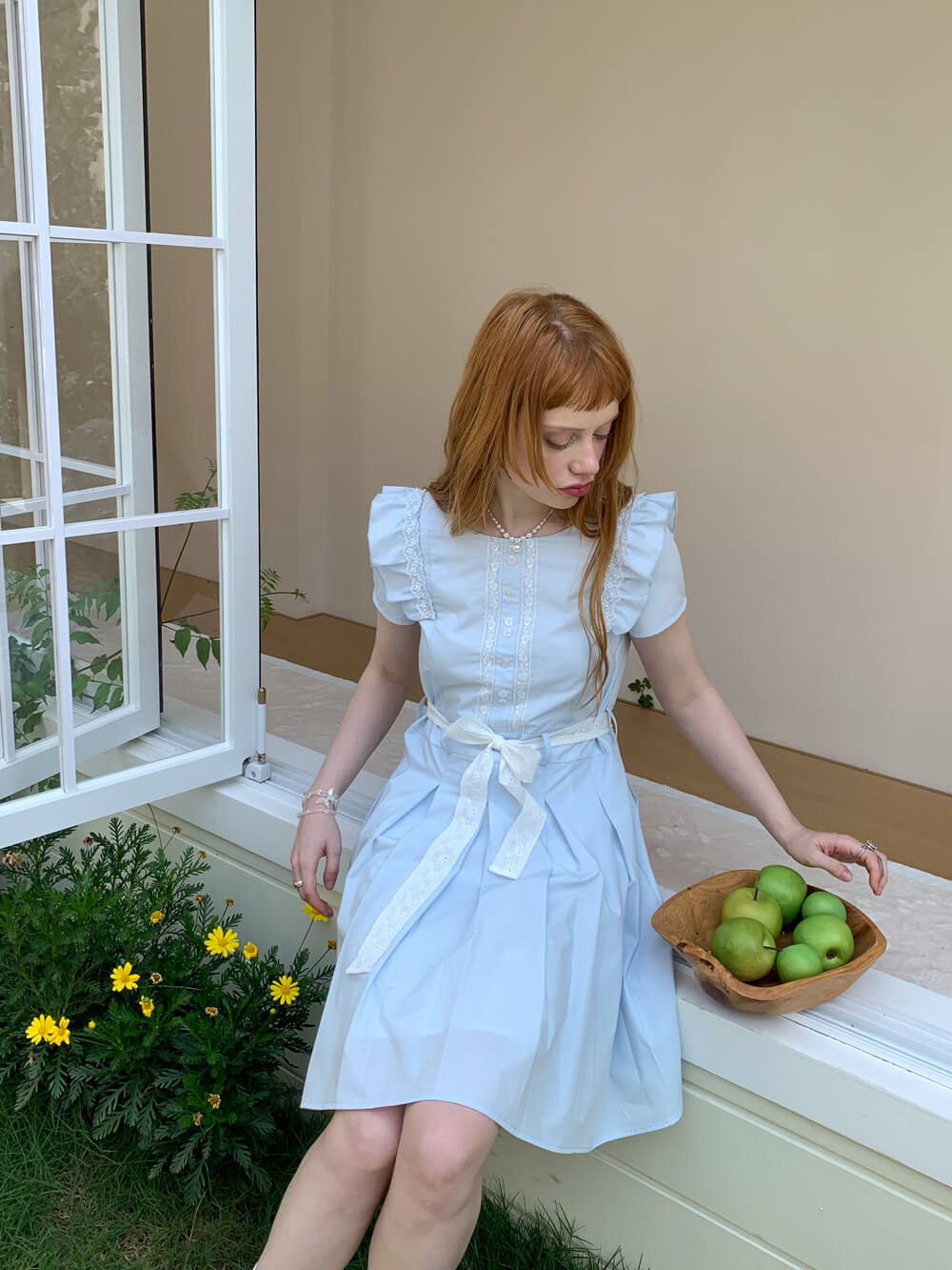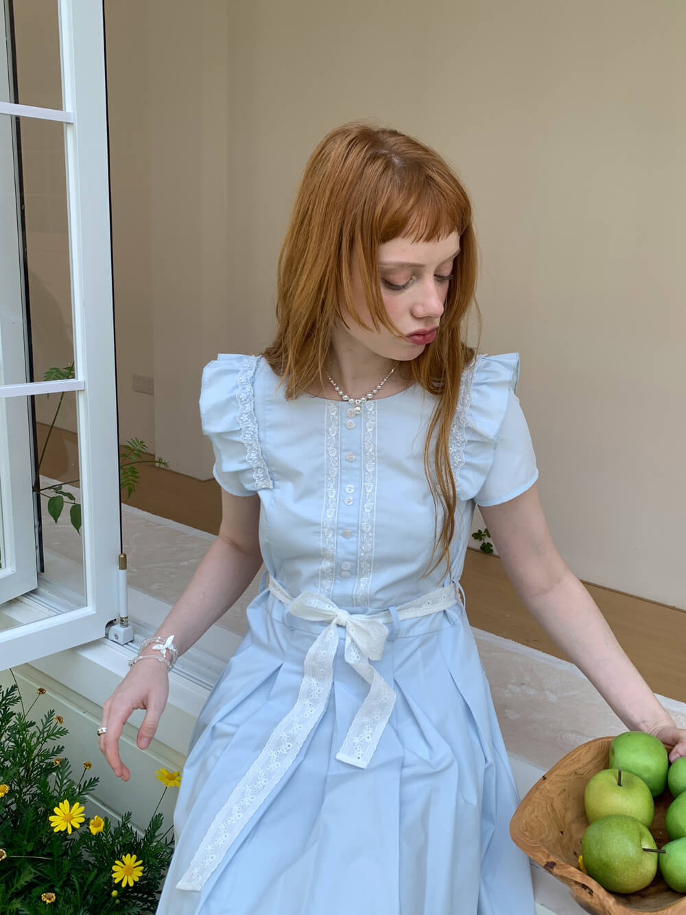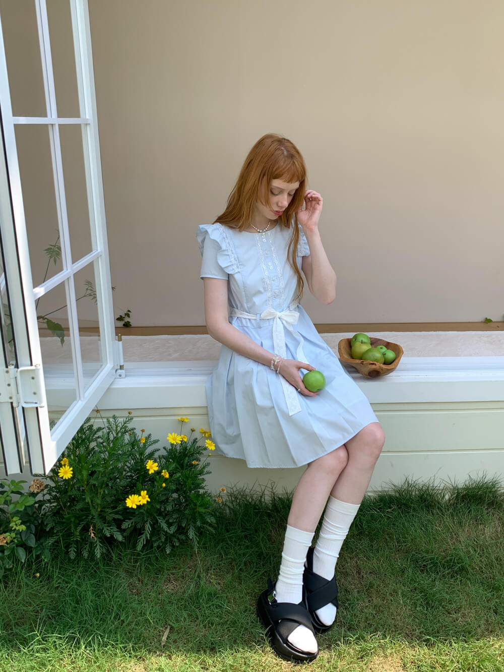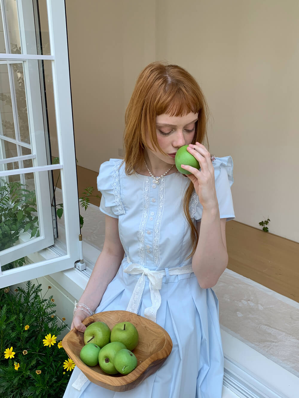 繊細なレースとリボンがロマンティックな、水色フリルワンピース