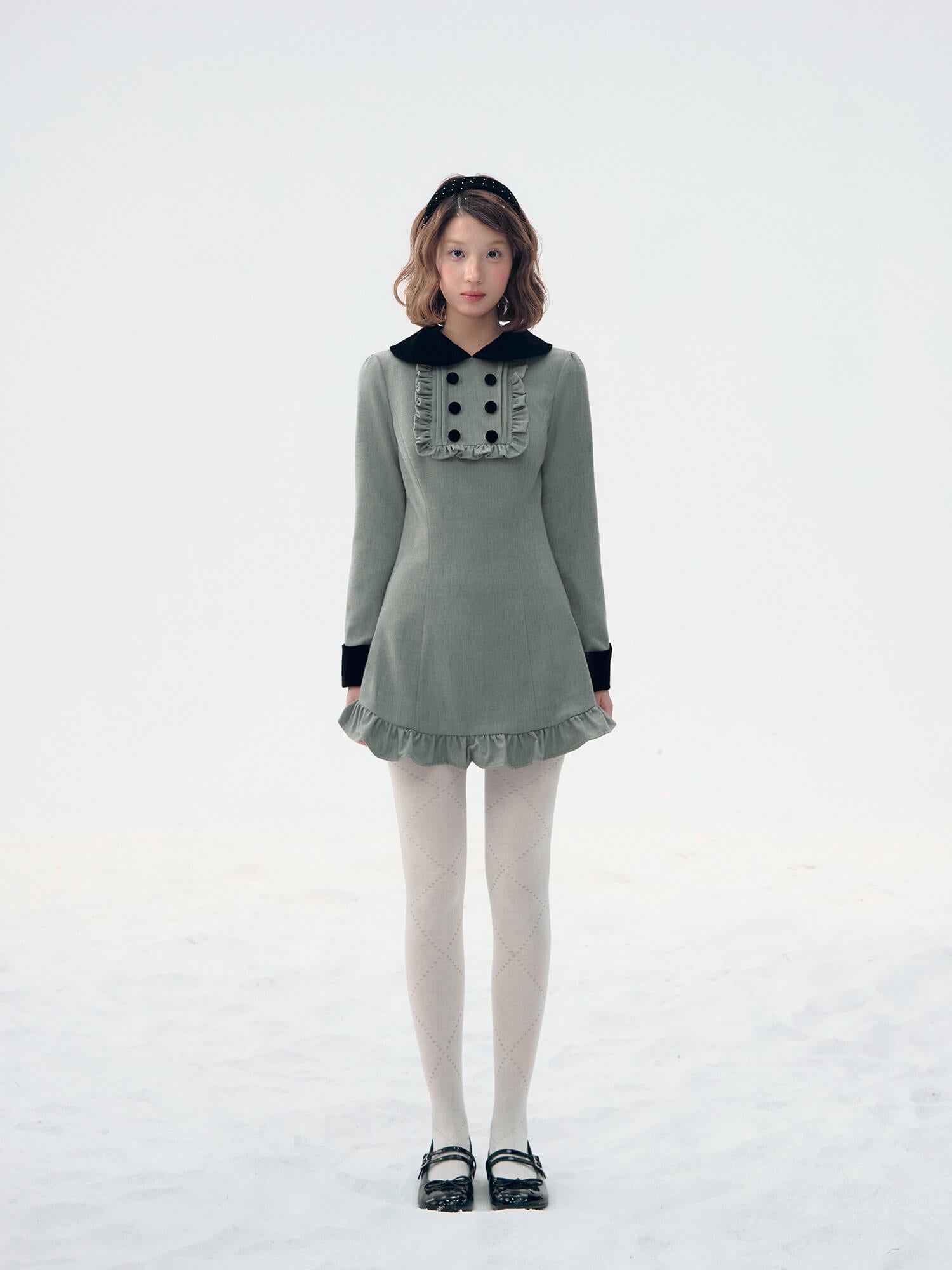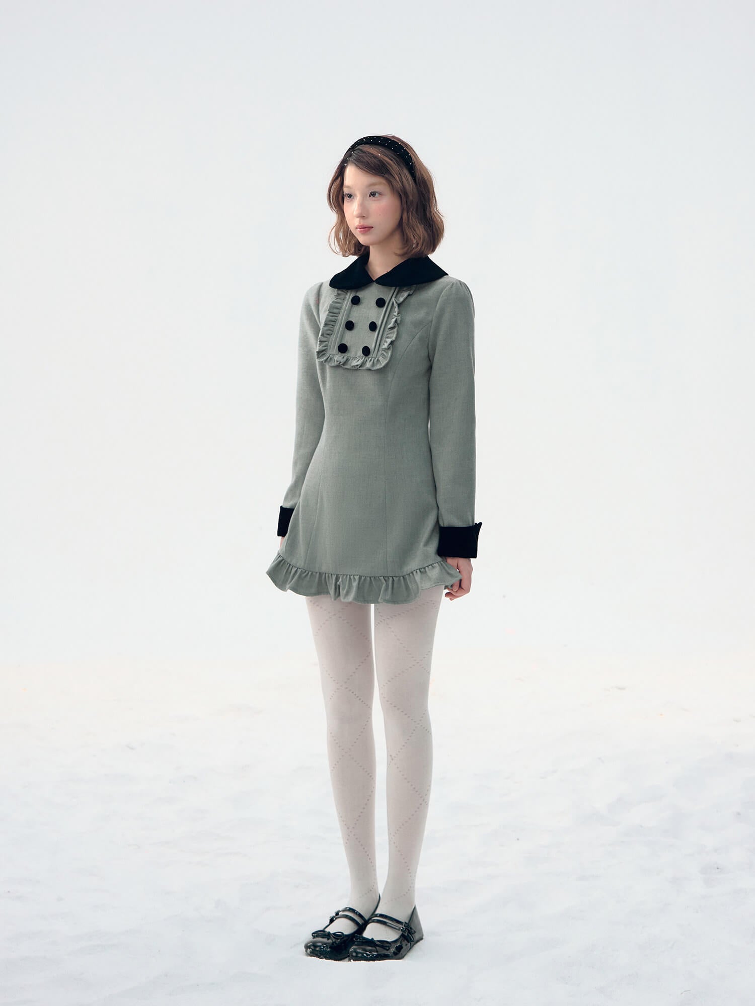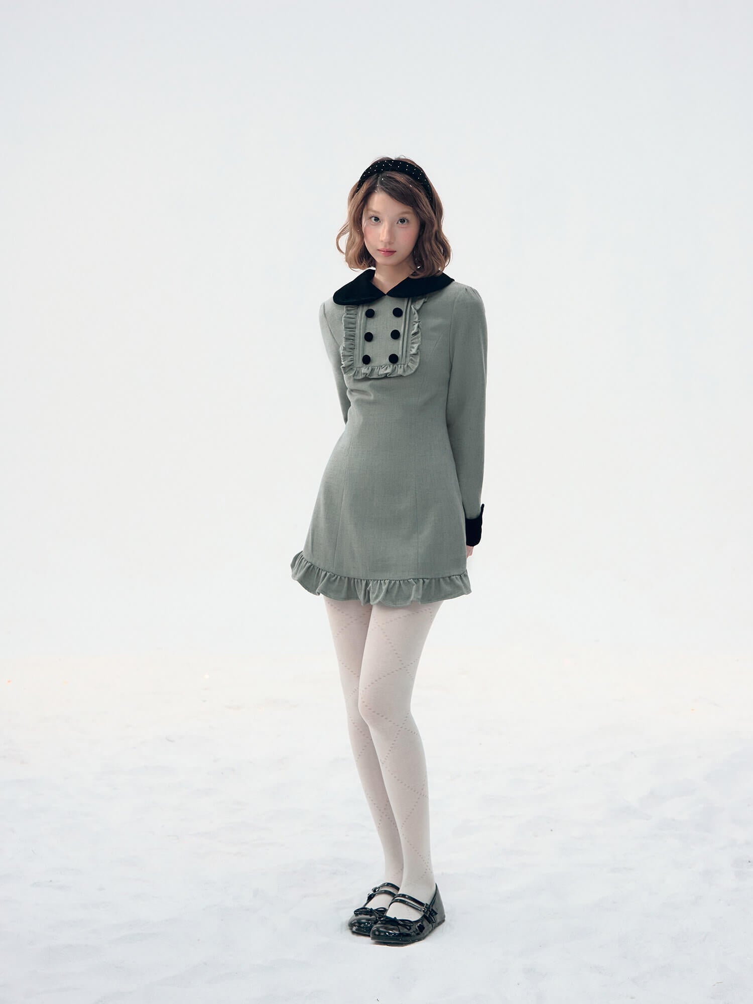 Velvet Collar Classic Frill Dress(全2色)
