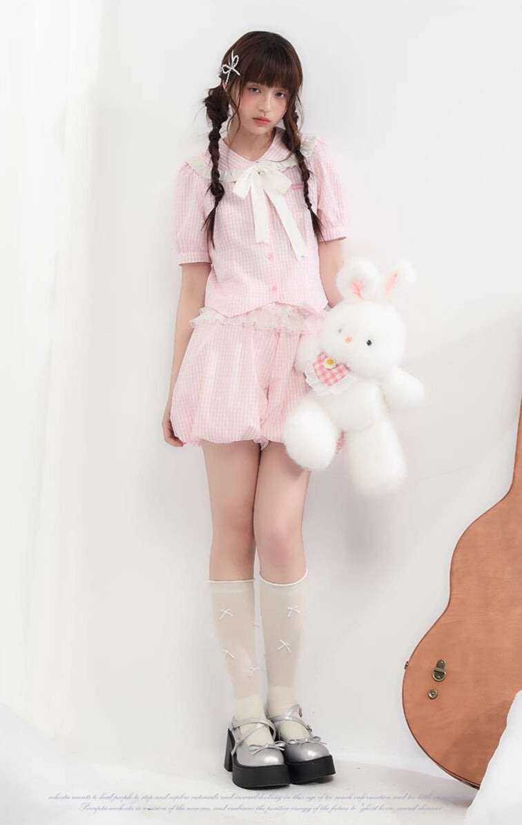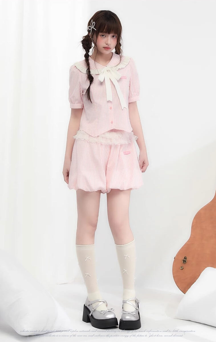 ・パフ袖とフリル付きバルーンショーツで360度ガーリーなシルエット。