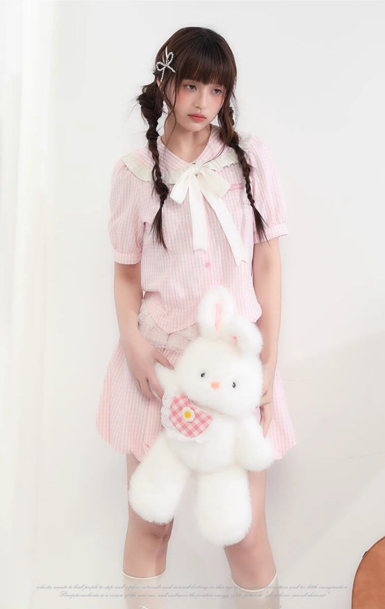 ・ガーリーなピンクの細ギンガムチェック柄で甘く可愛い印象に。