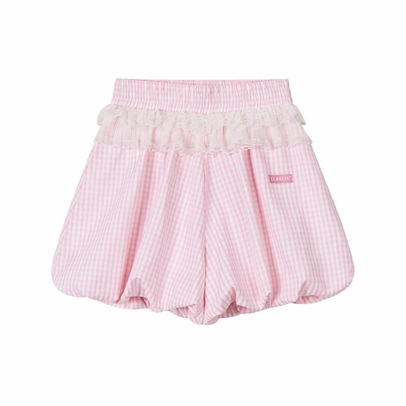 チェック柄とレースフリルの組み合わせがとにかく可愛く、1枚で世界観が完成するアイテムです。
