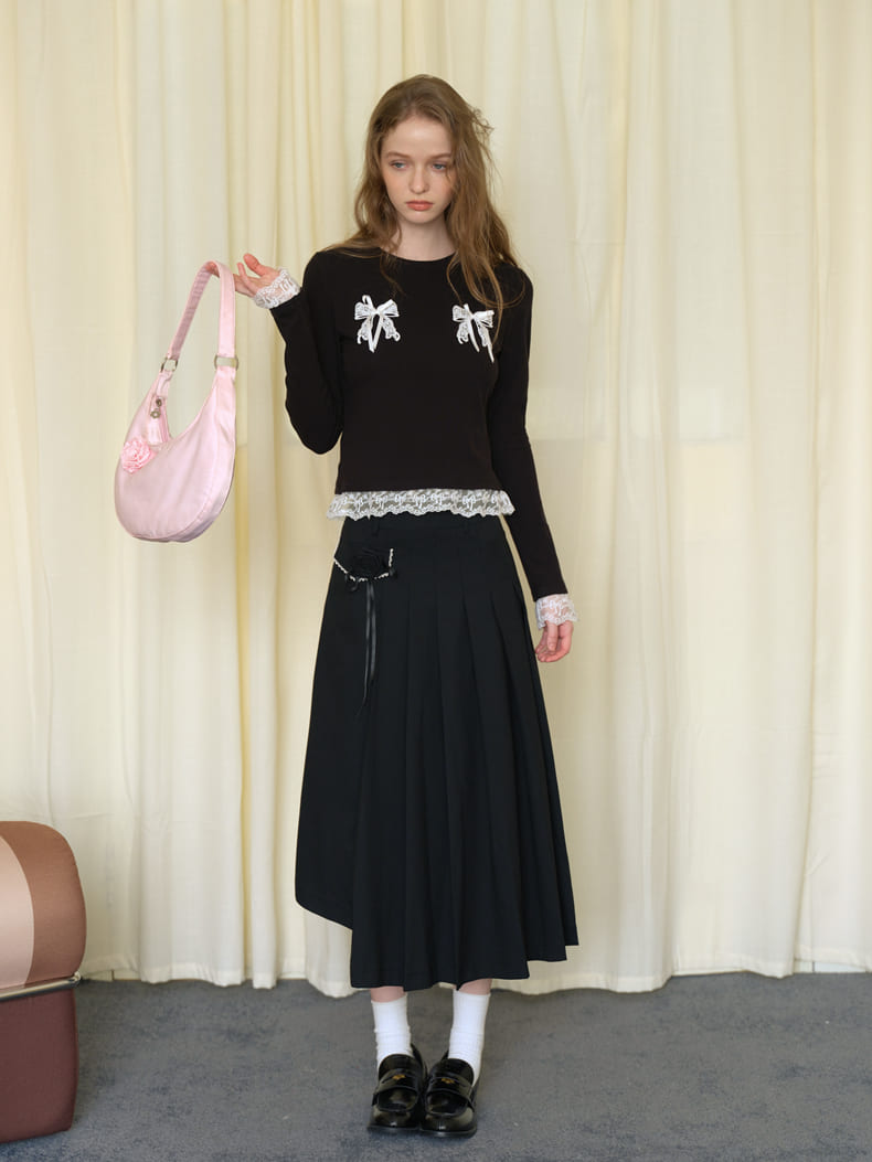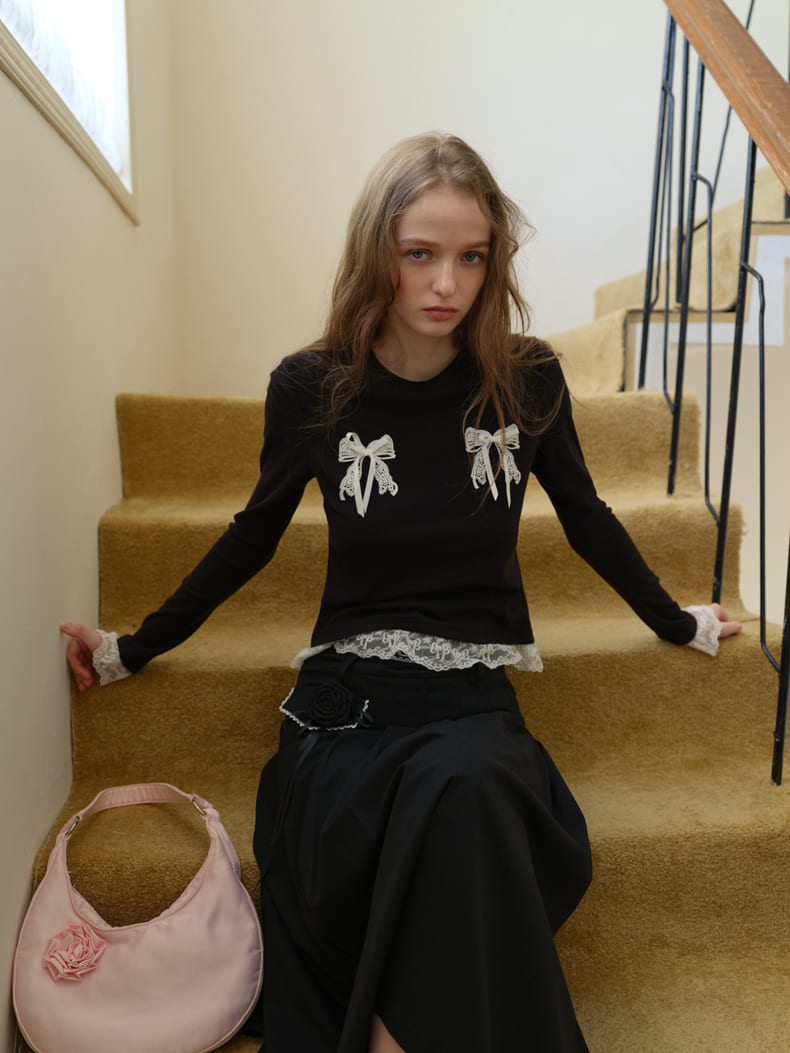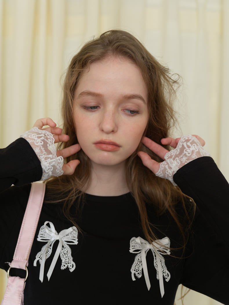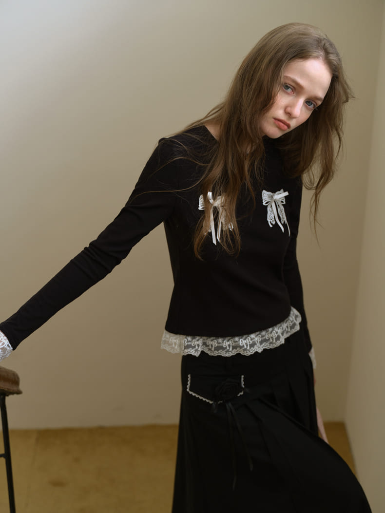 繊細なレースとリボンが華やかさを引き立てる上品な長袖トップス