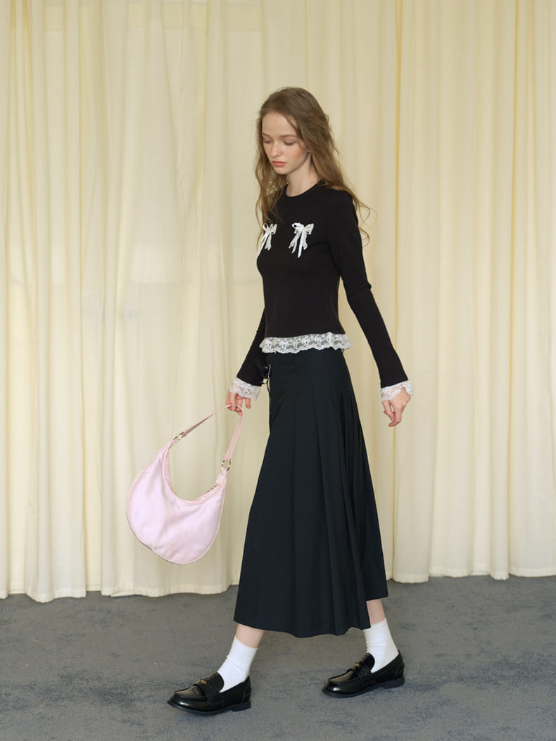 ・フロント部分に施された2つのリボンデザインが、ガーリーでありながら高級感を演出。