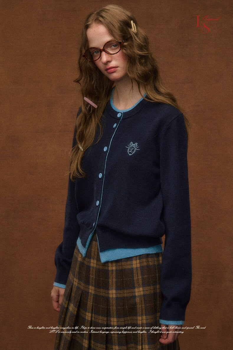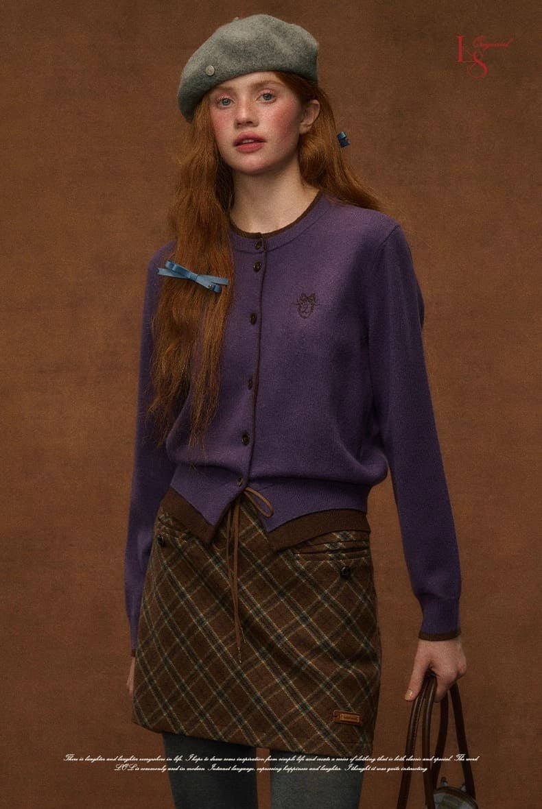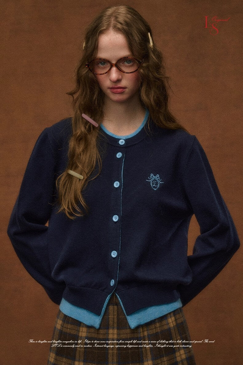 お嬢様風のクラシカルな可愛さを演出する、ガーリー配色とシルエットが魅力のカーディガン