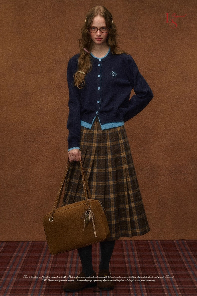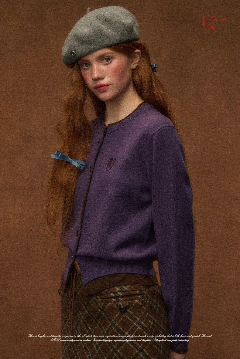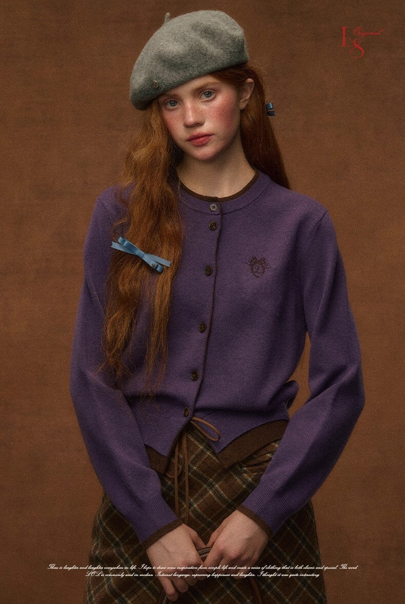 まるで昔の絵本から出てきたような、クラシカルな配色が目を惹くカーディガン。