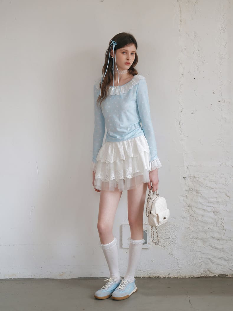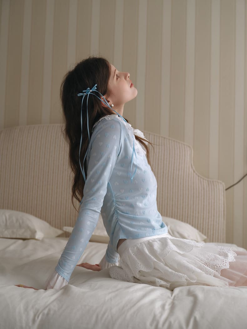 Powder Blue Heart Jacquard Frill Top