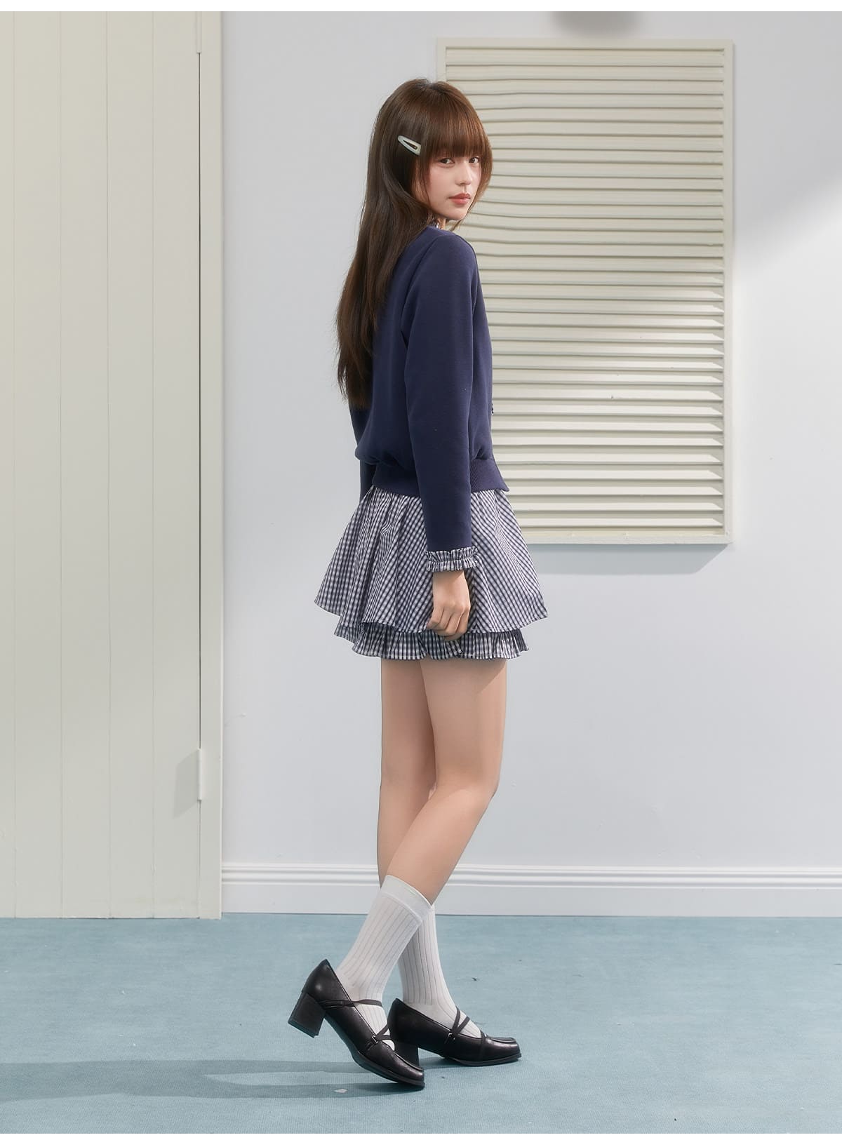 Ribbon & Heart Lace Frill Tiered Mini Skirt