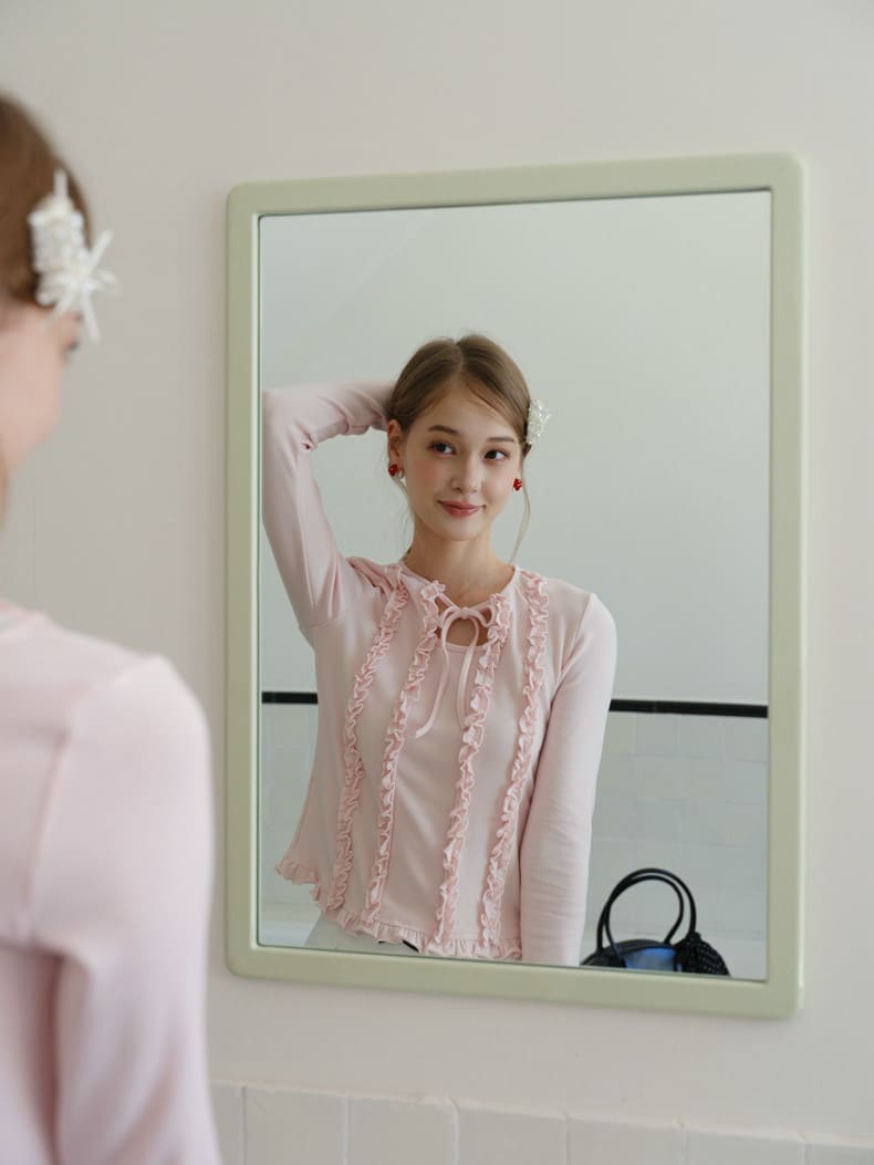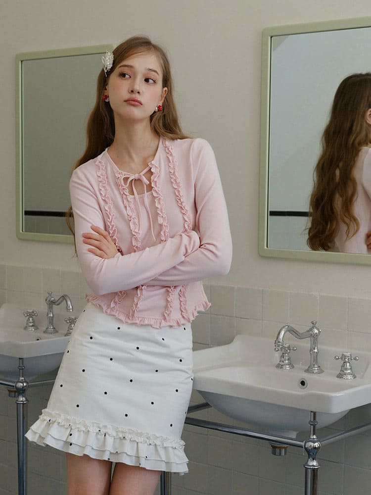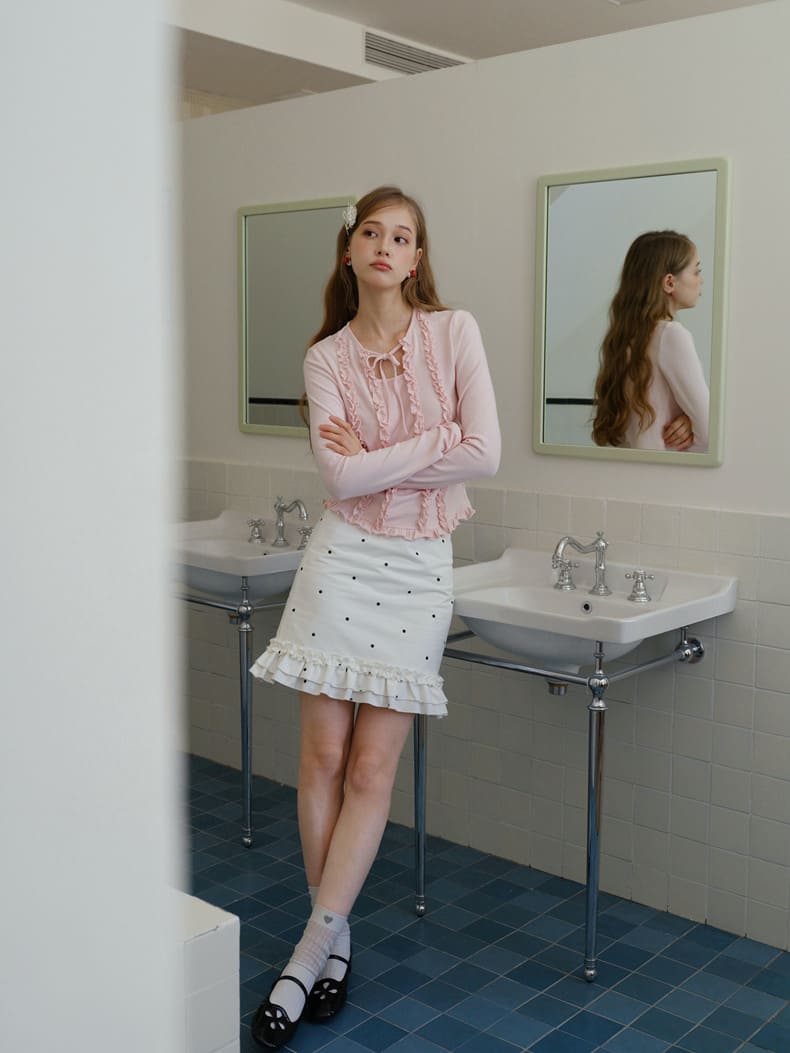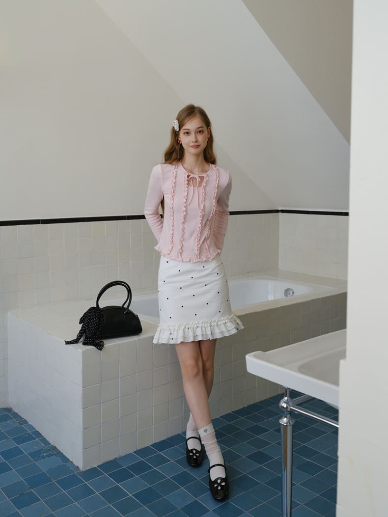 ・縦ラインにあしらわれたフリルディテールが、華奢で女性らしいシルエットを強調。