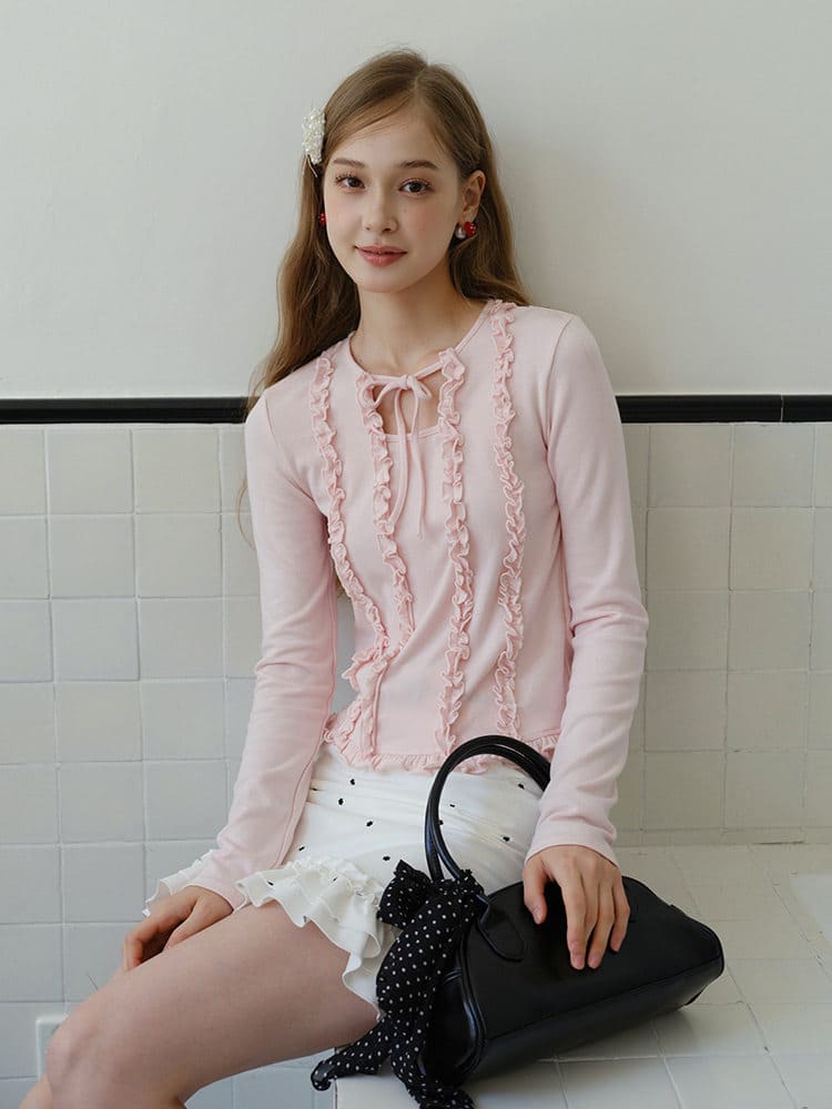 Noble Silhouette Ruffle Trim Top